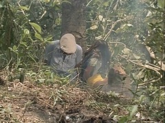 Captain Wells is tied to a tree as a shield by a criminal trying to avoid capture.
